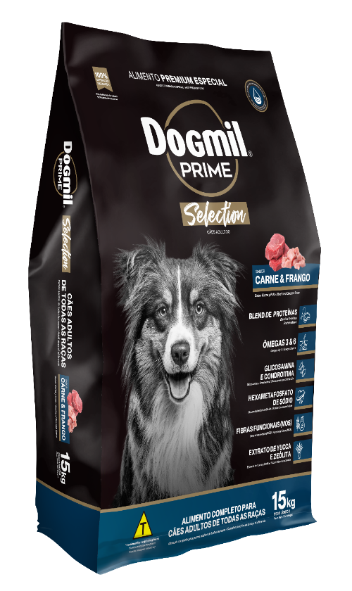Dogmil Prime® é produzido com proteínas de origem animal e vegetal que oferecem aminoácidos e ácidos graxos das famílias ômega 3 e 6, essenciais para o transporte de vitaminas, fornecimento de energia e palatabilidade.